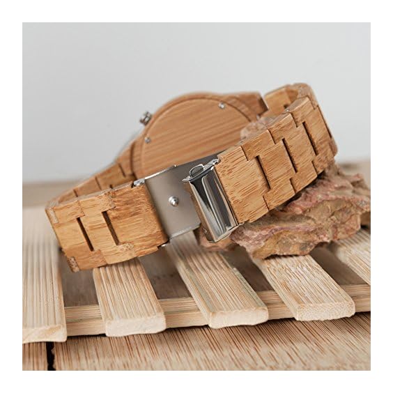 2. Bamboo band Watch; Bracelet Clasp; Light weight : 44.5g ; Luminous Night Silver pointer; Adjustable Wristband with fix tool