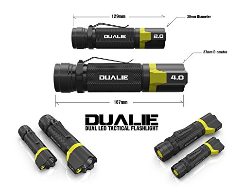 The DUAL-E 2.0 combines a powerful LED spot light for long distance visibility with a wide angle flood light for close range area lighting. These two LEDs can be used simultaneously with the DUAL-E, providing 200 lumens, increasing your overall visibility.