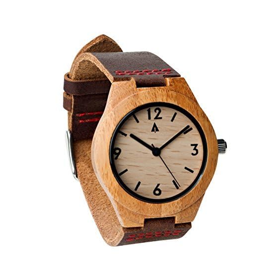 Treehut Men’s Watch with Genuine Leather Strap Quartz Analog Wooden Durable Quality Wrist Watch