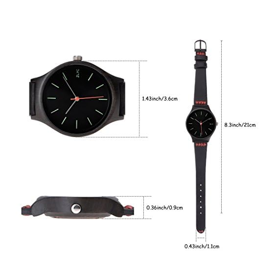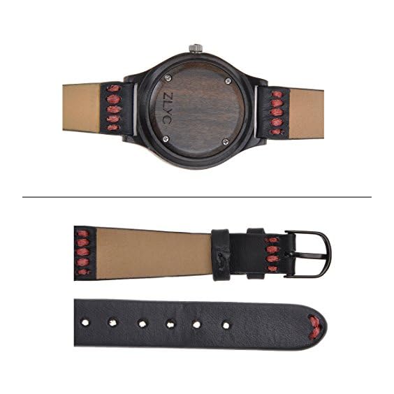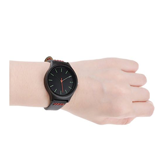 ★ NATURAL EBONY WATCH DIAL: Our ZLYC watch dial is handcrafted with natural ebony wood, there is just a thin layer of high quality transparent protective oil on the surface to try our best to retain the original texture and character of wood, so this watch is full of unique wood grain. And every 2 pieces of wood are not exactly the same, so every watch is unique and stunning. As the material is natural and eco-friendly, so it is safe to wear without fear of irritation